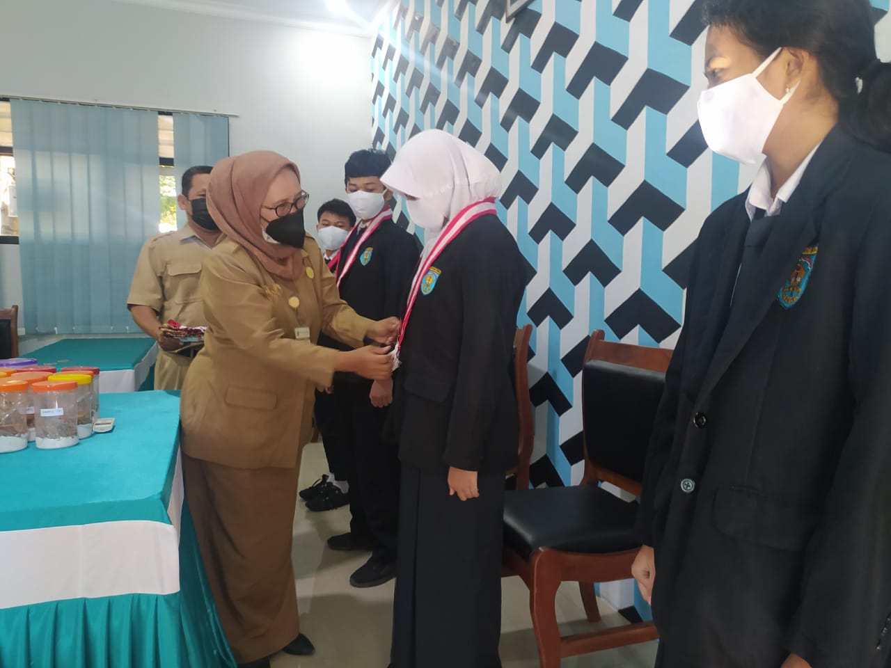 | Anggota tim sains project mendapat penghargaan dari Kepala SMPN 3 Pati Rukayah |
