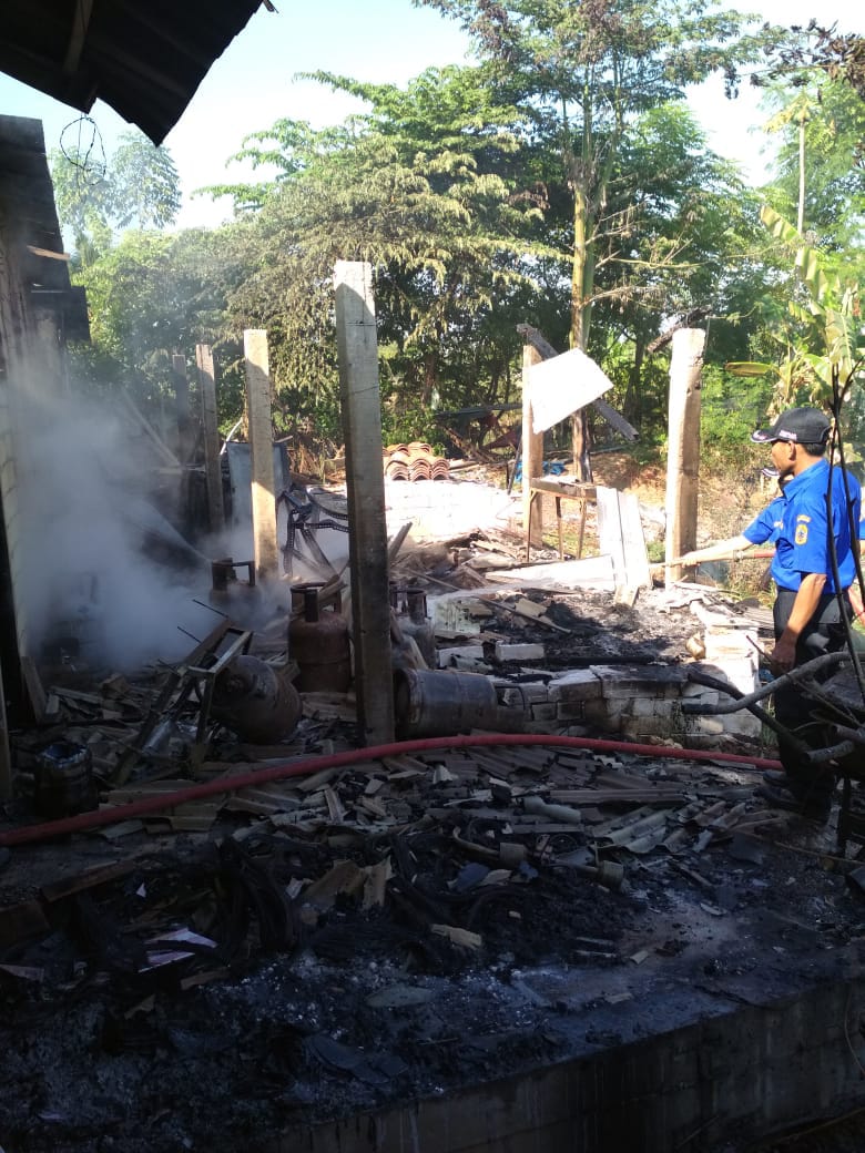 membakar seluruh bangunan seluas 8 x 12 meter persegi. Apalagi cuaca sedang