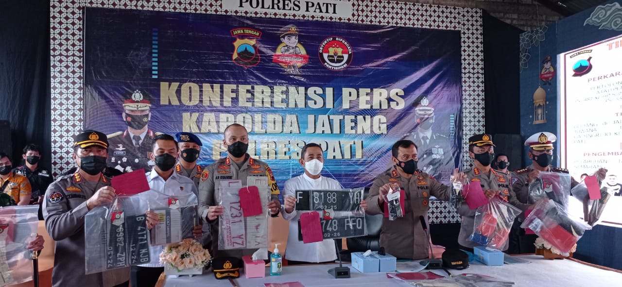 | konferensi pers ungkap kasus gudang motor bodong di Gadingrejo, Juwana |