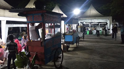 pedagang hadir. Seperti pedagang mie ayam, dan jagung rebus. Mereka membawa