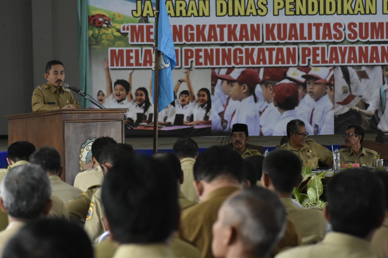 | Bupati Haryanto memberikan sambutan di acara Rakor Pendidikan dan Kebudayaan, Selasa (16/10/2018) |