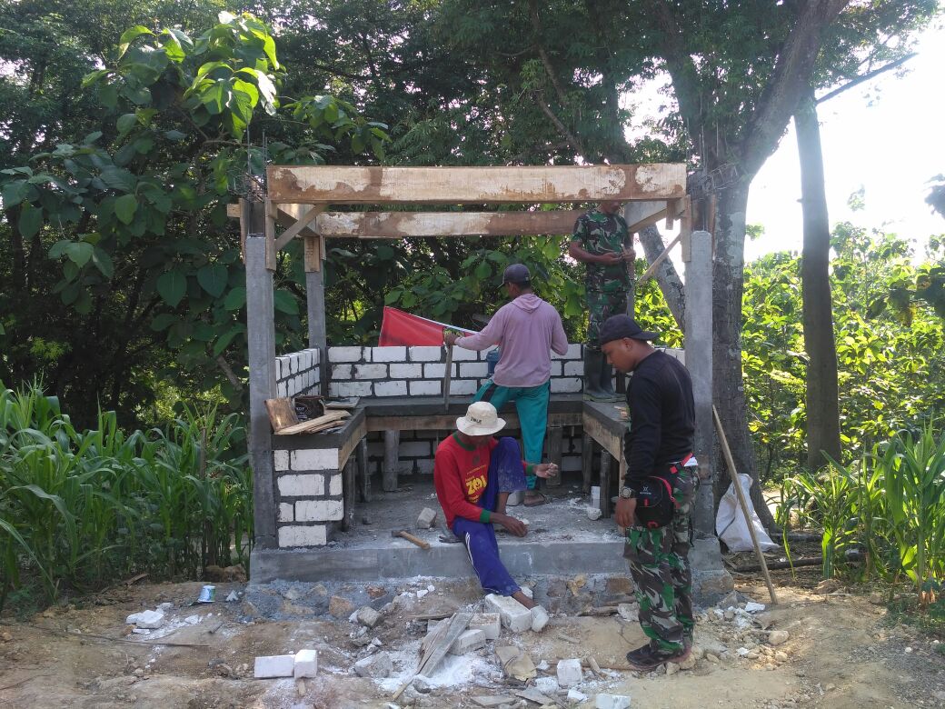 Satgas TMMD bergotong-royong membangun dua unit Pos Kemanan Lingkungan (Poskamling).