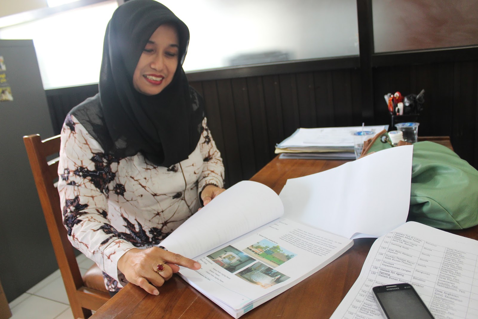 : Trevita Puspita Hadi menunjukkan buku hasil pendataan cagar budaya di salah satu kecamatan |