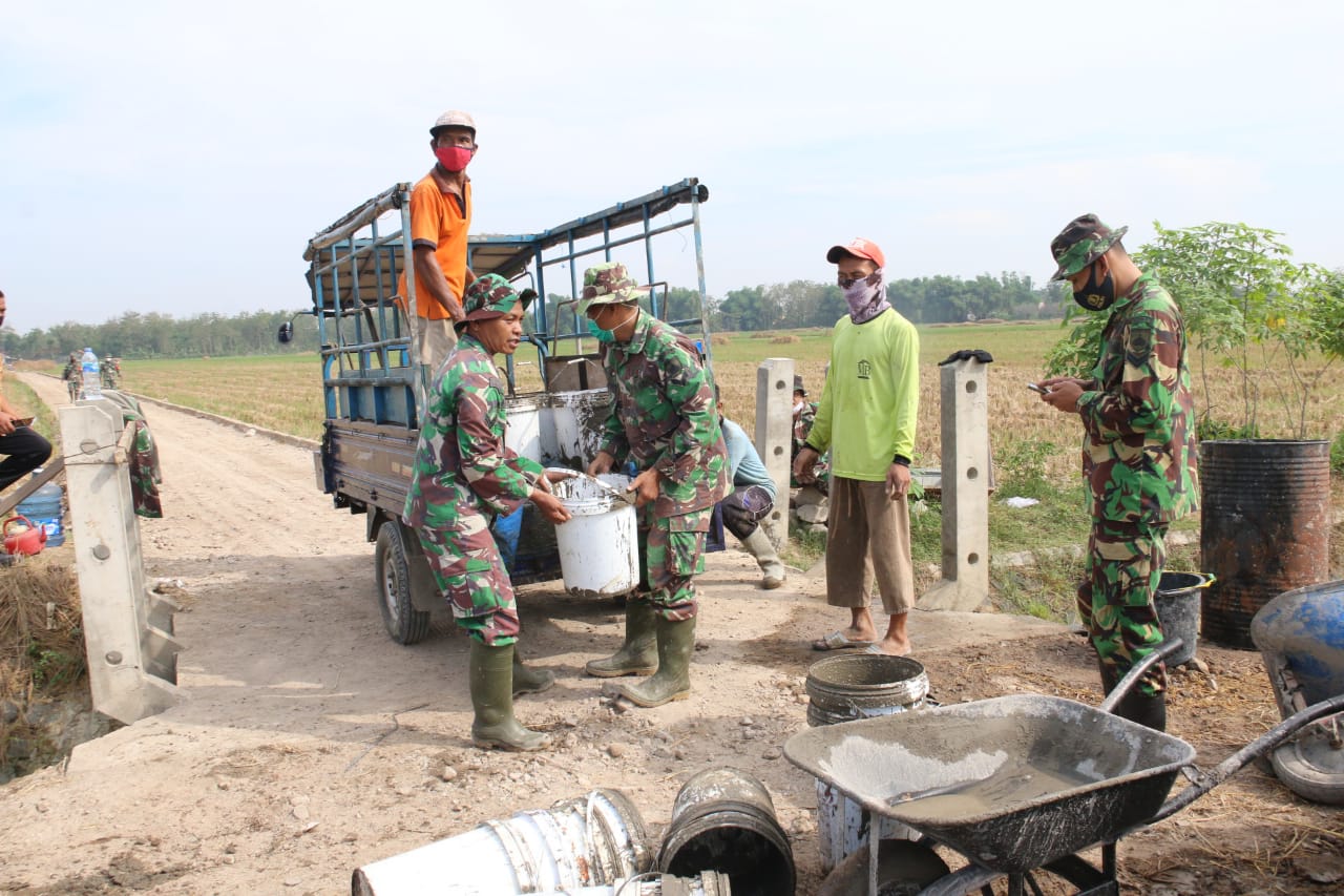Pati,TNI bersama masyarakat bergotong royong melaksanakan pengerjaan pengecoran
