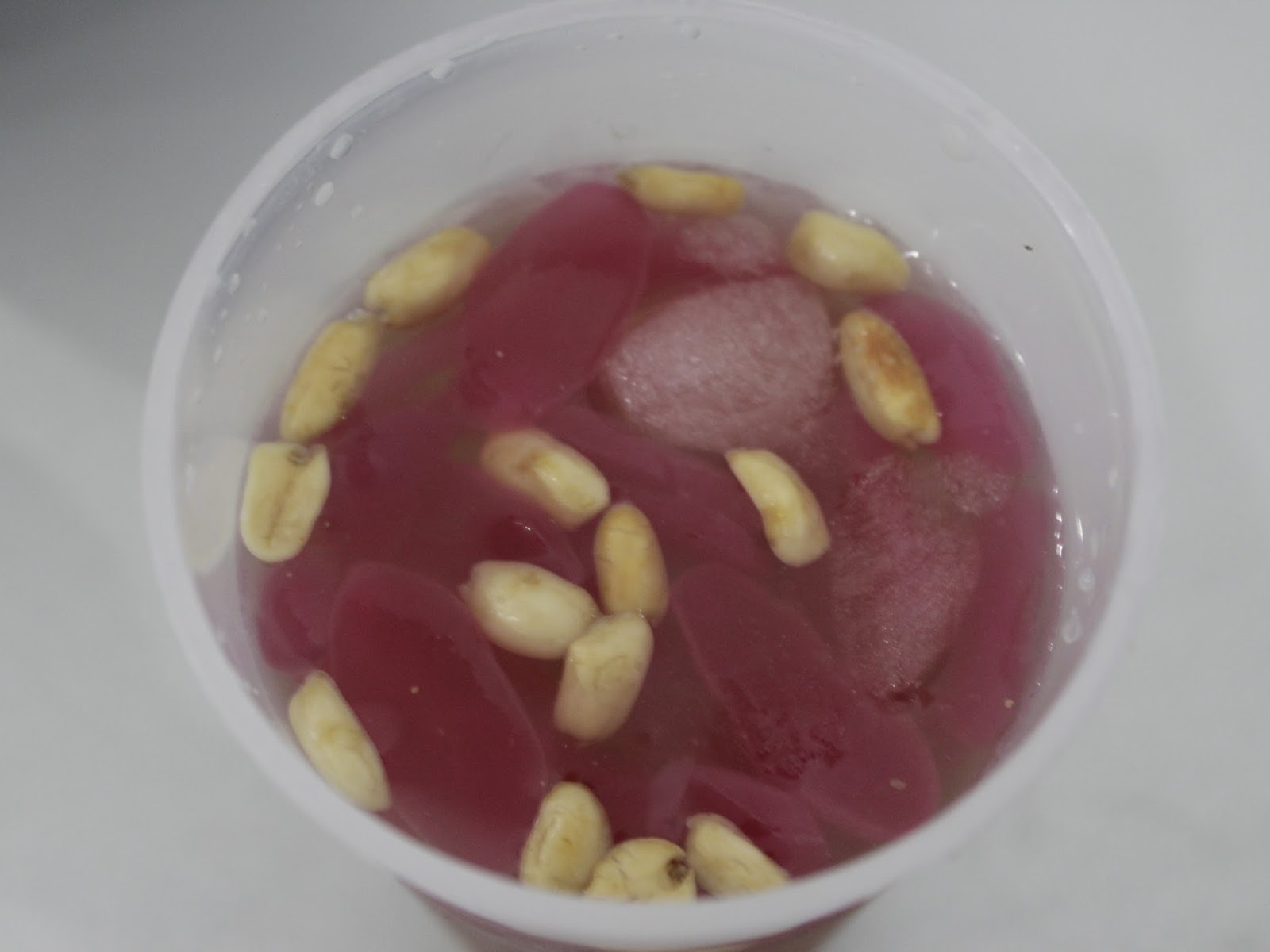 kolang-kaling, bolaibola ketan dengan isian gula dan kacang, serta kacang