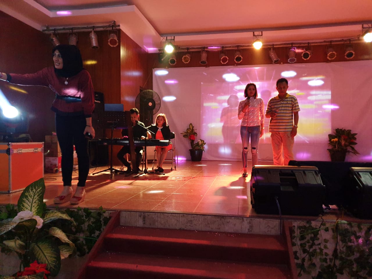 | Nyanyi di atas panggung Sasana Budaya Roso Asih |