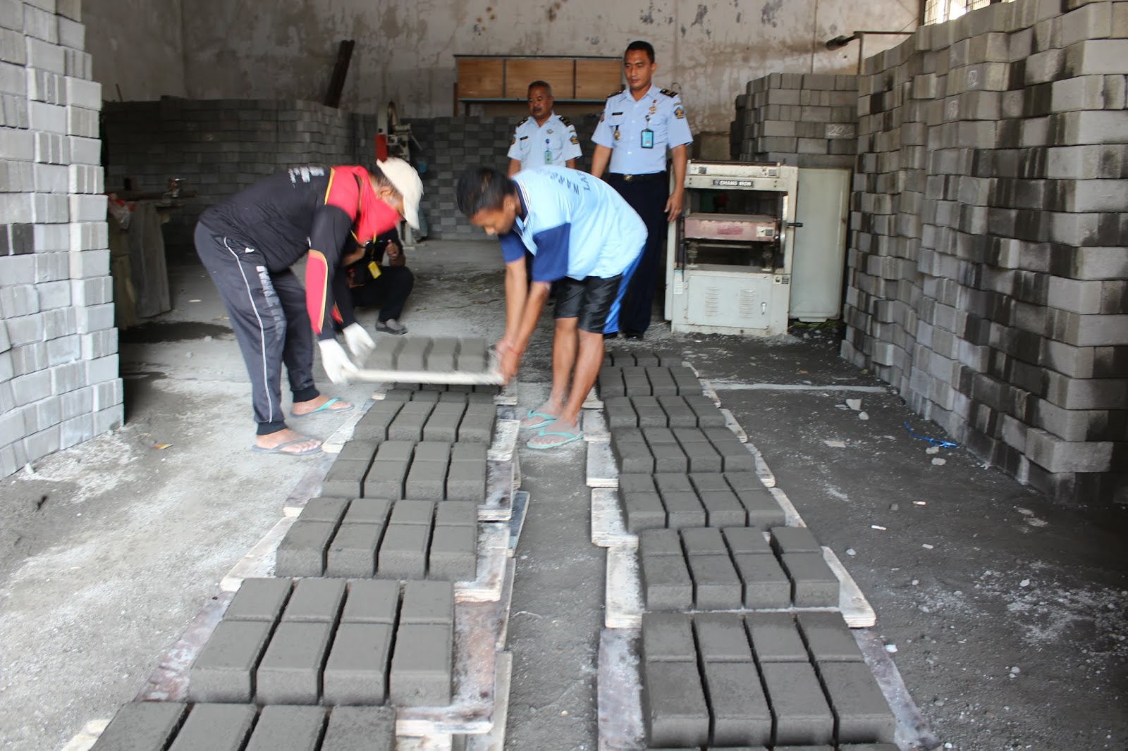 | Beberapa napi yang menghuni lapas kelas II B Pati sedang membuat paving |