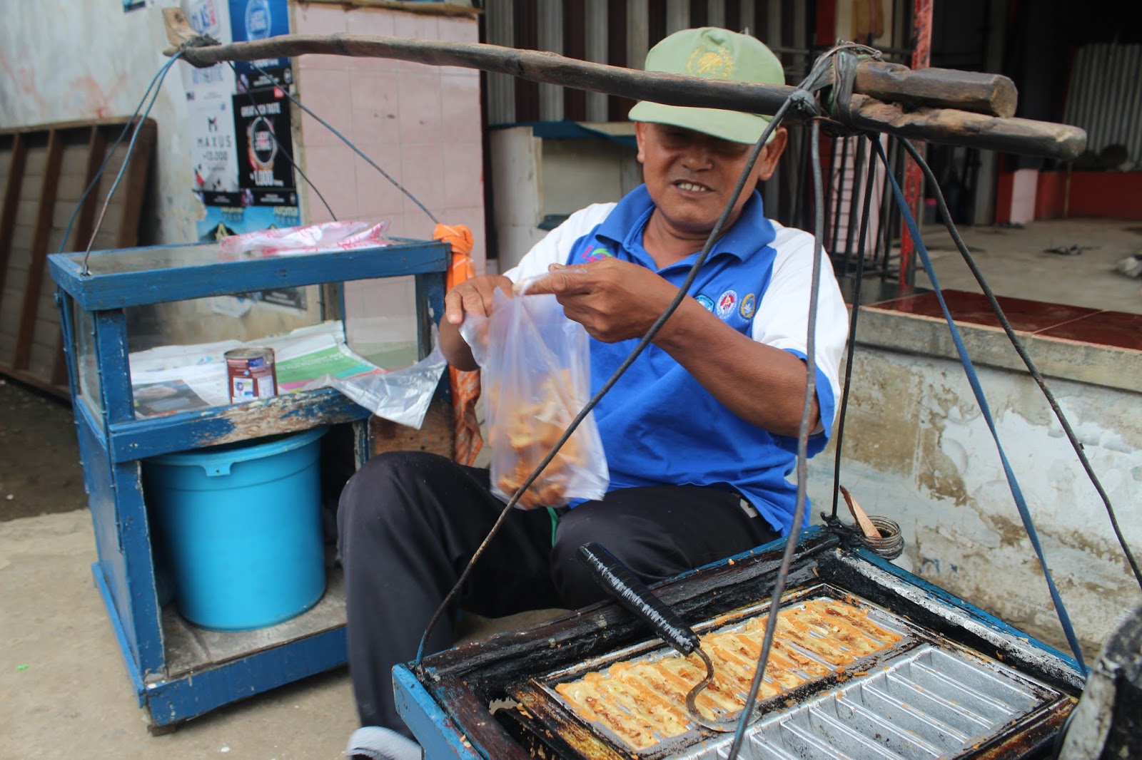 dia juga mempertahankan keotentikan peralatan jualannyan. Media jualan tetap