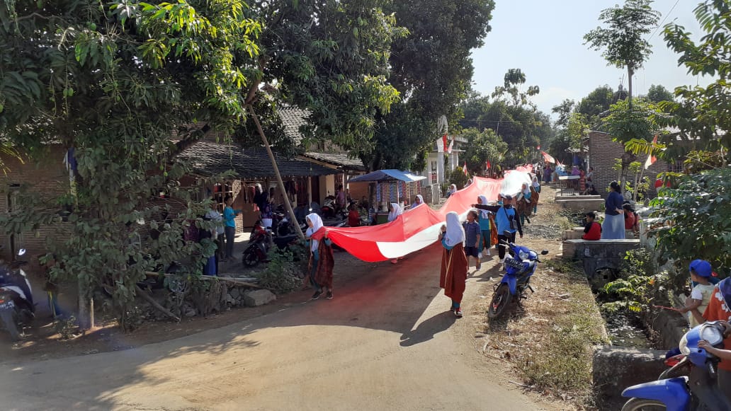 Maknai Merdeka Bendera 100 Meter Diarak Keliling Desa