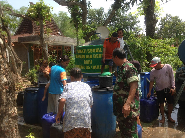| Warga di beberapa desa di Kecamatan Jakenan mendapatkan bantuan air bersih oleh Koramil Jakenan |