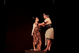 Di atas panggung yang temaram, sesosok perempuan dengan sanggul menunjukkan tatapan mata yang begitu tajam. Terlihat bara menyala di ujung udud (rokok) yang dipegang di tangan kanan. Dia berdiri. Dia ledakkan emosinya.