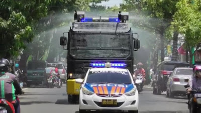 | Penyemprotan disinfektan yang dilakukan Polres Pati belum lama ini |