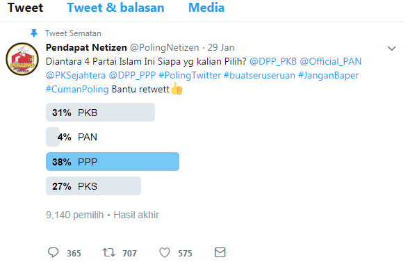sebanyak 9.140 responden yang mengikuti polling tersebut menempatkan PPP pada