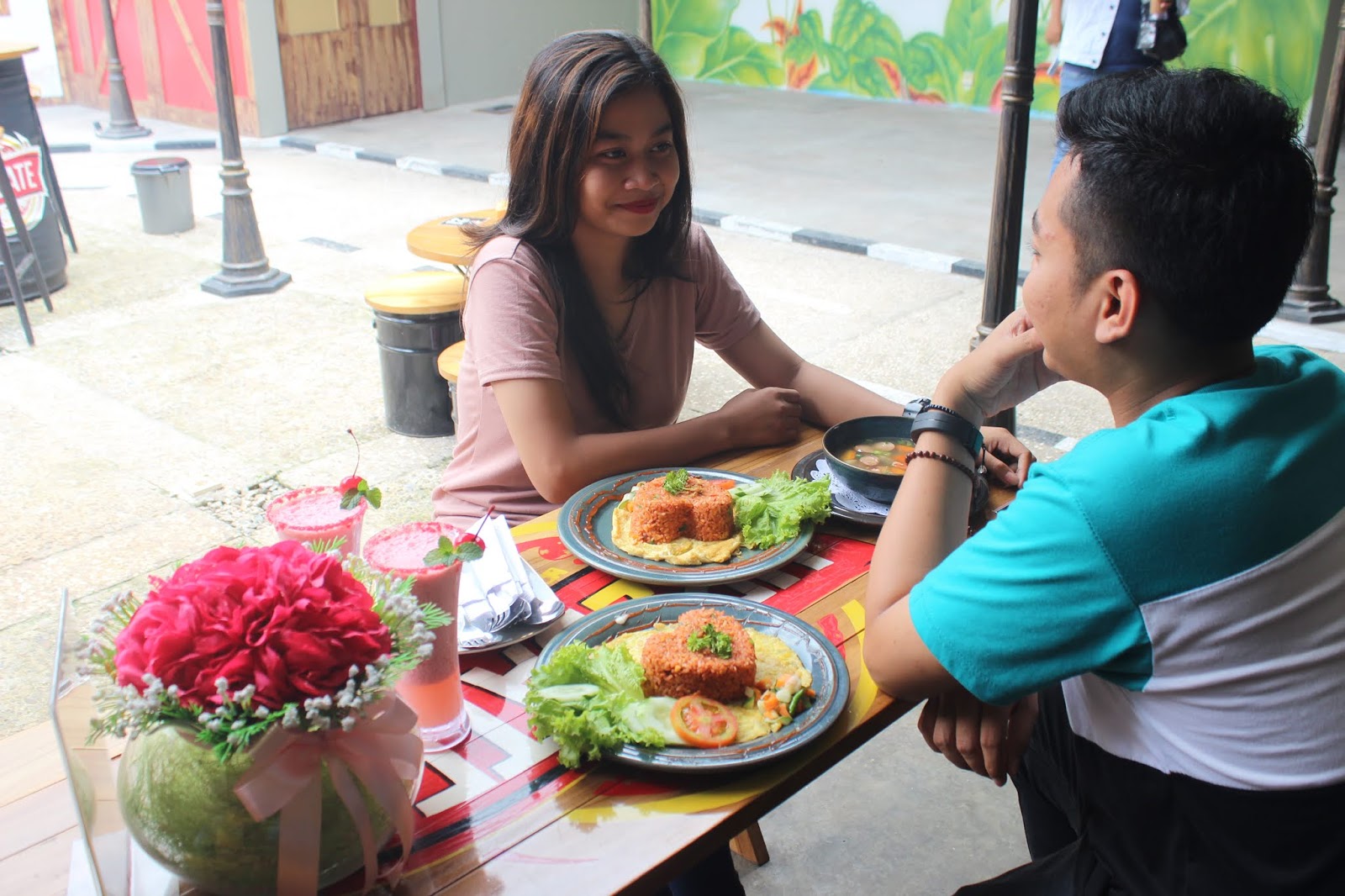 itu, mereka menyuguhkan menu spesial kuliner lokal. Nasi goreng berbentuk love