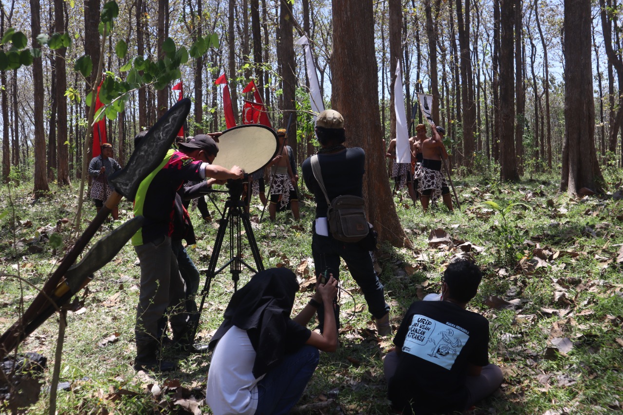 | Proses pengambilan adegan untuk film Roro Mendut yang dilakukan oleh seniman teater di hutan jati Regaloh. |