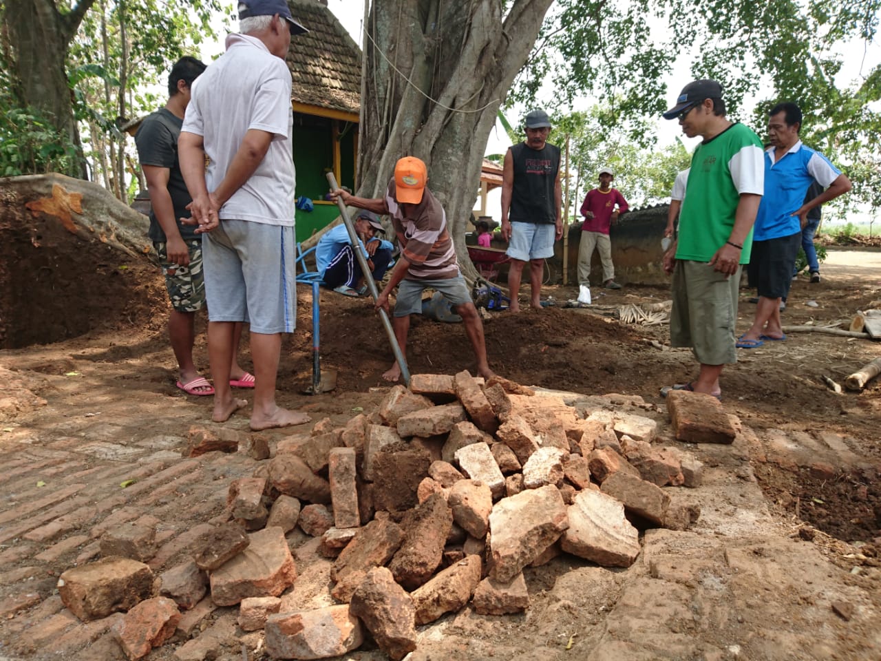 | Warga Dukuh Cacah Desa Sukoharjo Kecamatan Margorejo masih menggali bangunan diduga makam kuno |
