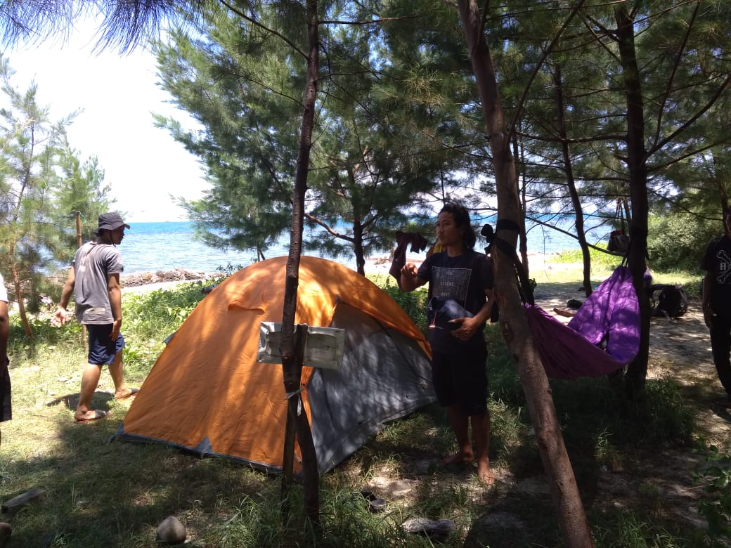 | Para pengunjung sedang mendirikan tenda di Pulau Panjang |