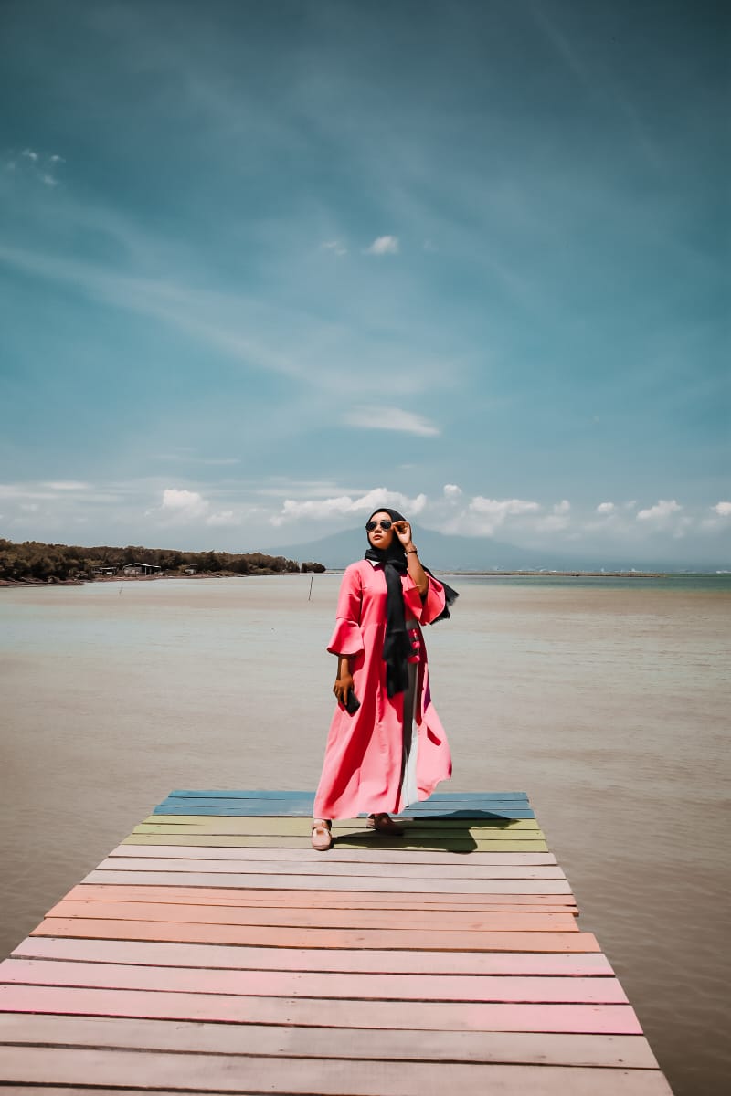 di sela-sela hutan mangrove. Ada jembatannya dari kayu. Tempatnya bersih