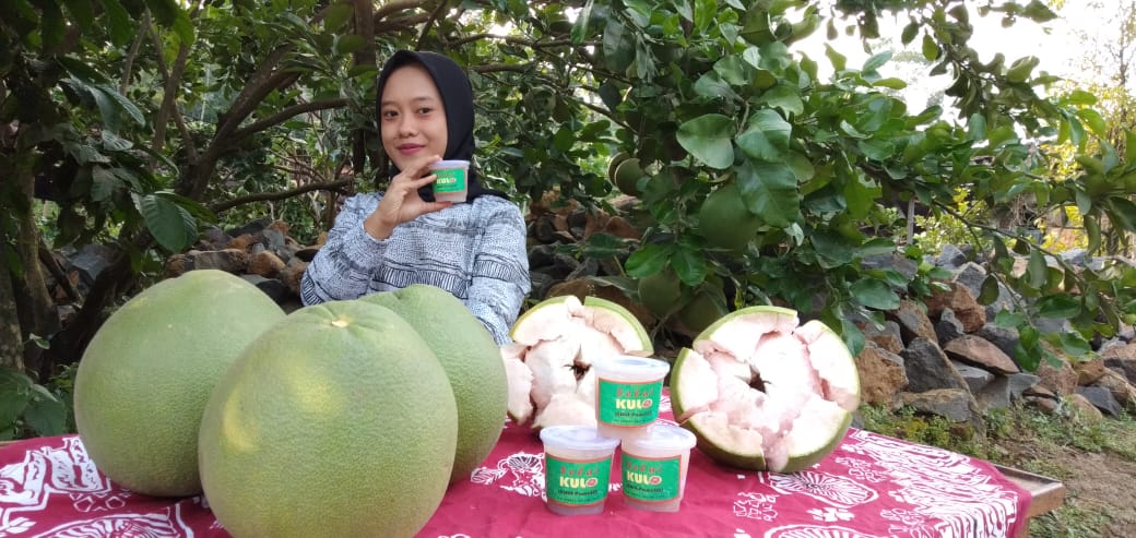 “Kulo”, akronim dari kulit pamelo. Produk ini dinilai patut bersaing. ”Teksturnya