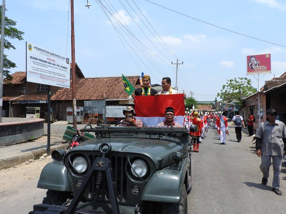 | Agung Kusuma Jaya diarak keliling Kecamatan Kayen usai pulang dari Brazil dan menggondol prestasi sebagai juara 3 di ajang olimpiade sains terapan |