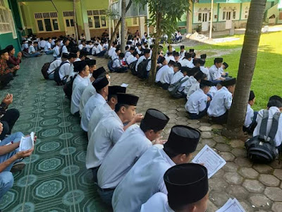 Jamaludin Umar memimpin pembacaan salawat tersebut. Ratusan siswa-siswi duduk