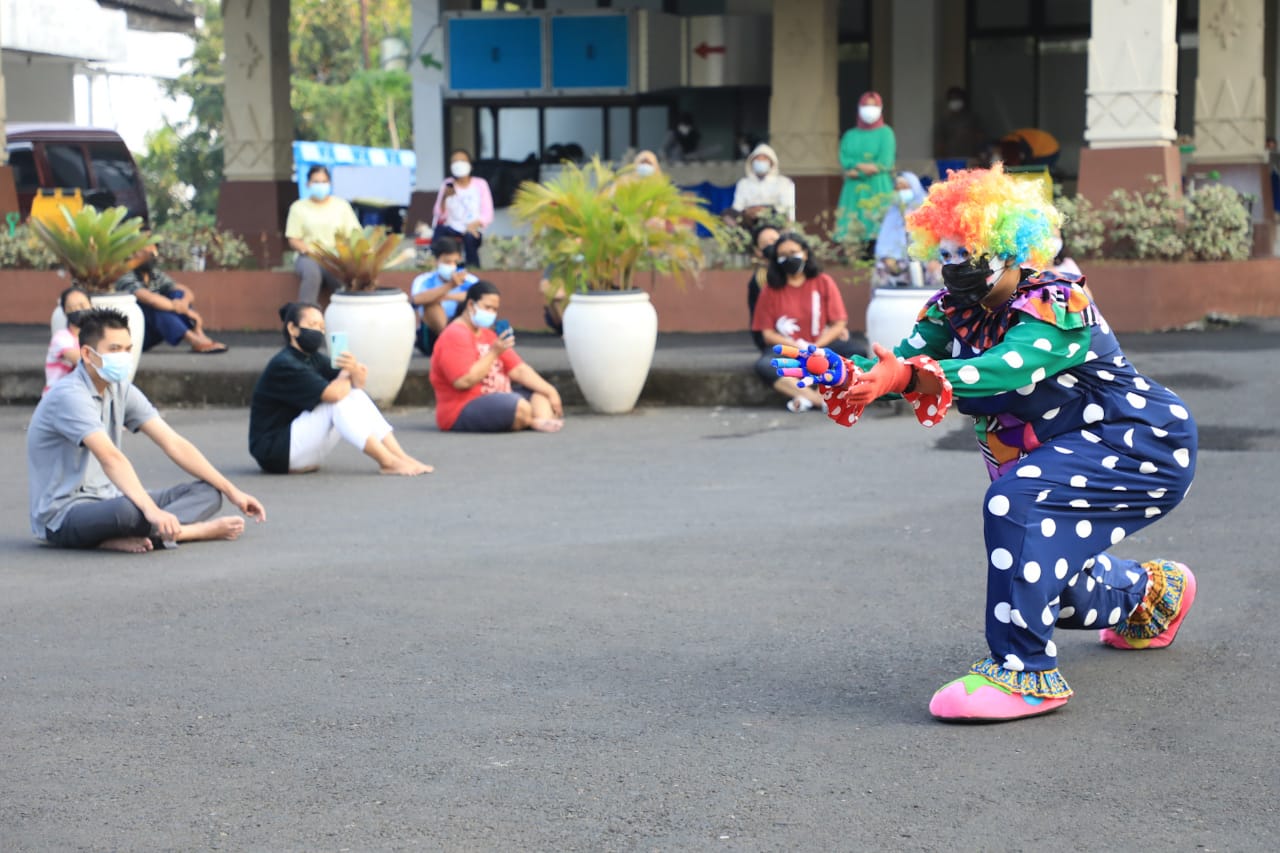 ketika ada sesosok badut muncul di hadapan para pasien isoman. Dengan tingkah