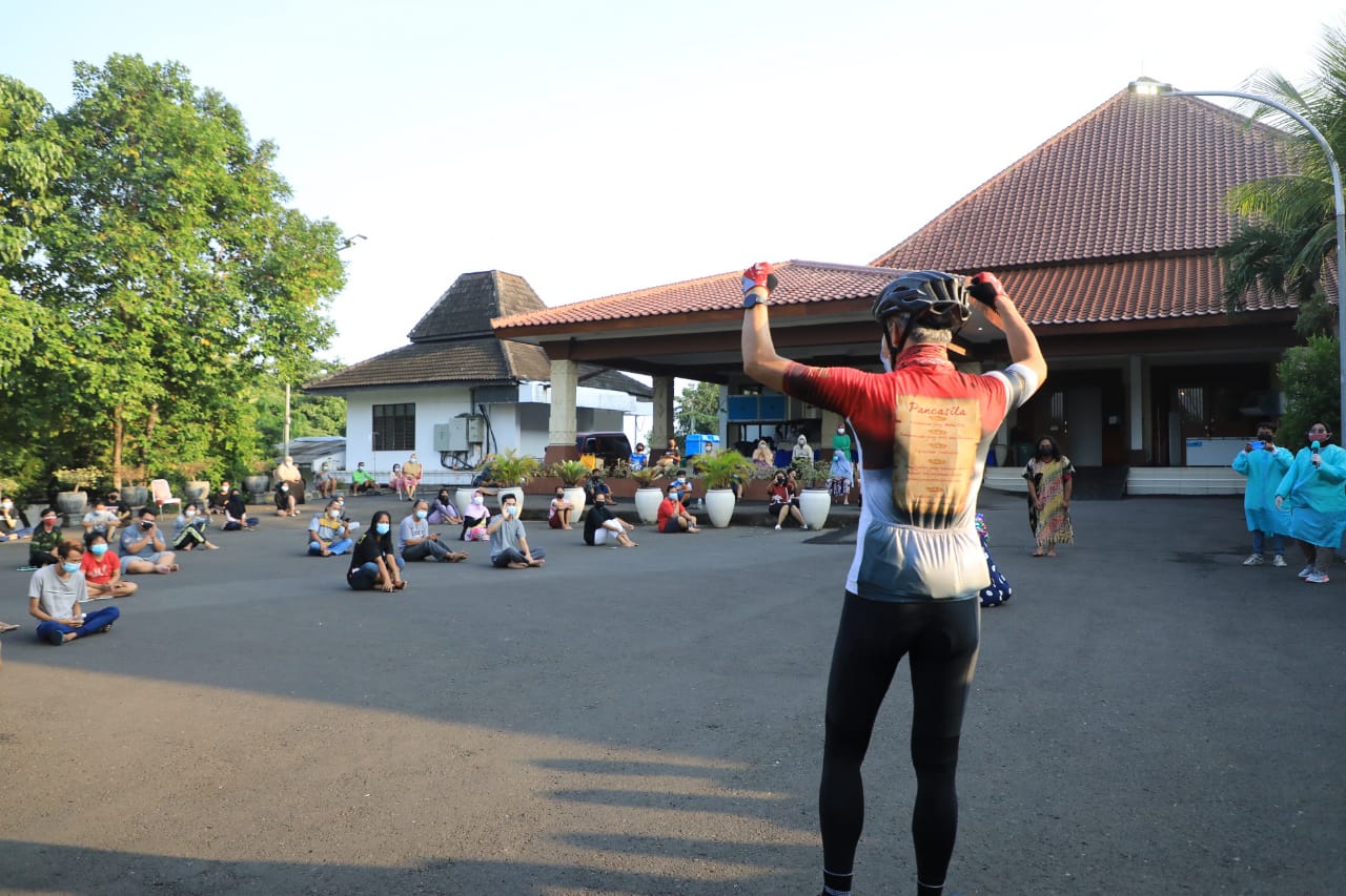 sedang gowes pagi mampir karena melihat ada aktivitas menarik di sana.