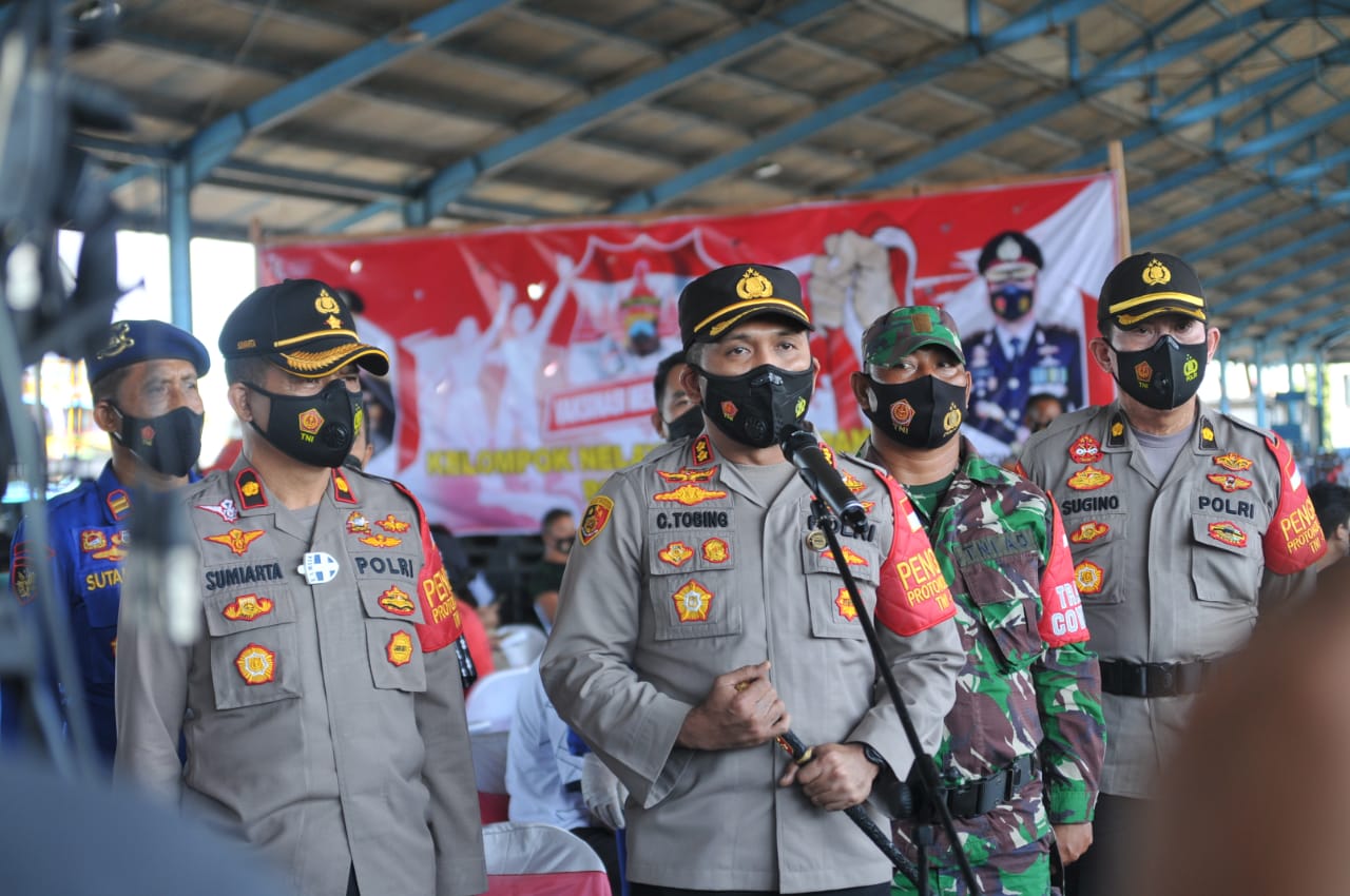 | Kapolres Pati AKBP Cristian Tobing meninjau vaksinasi di TPI 2 Juwana |